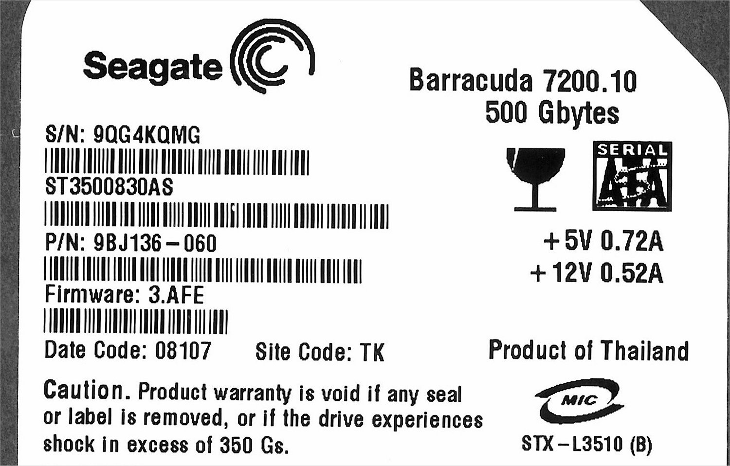 Elektronik Platine Festplatte ST3500830AS Seagate SATA