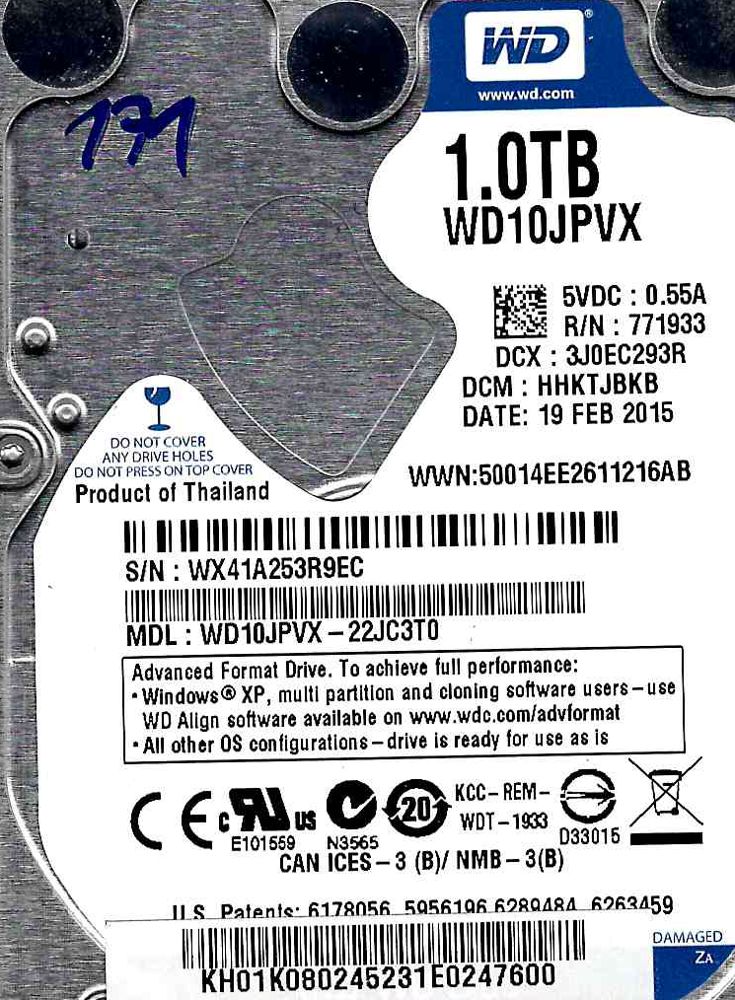 Elektronik von Festplatte 2,5″ SATA WD10JPVX-22JC3T0