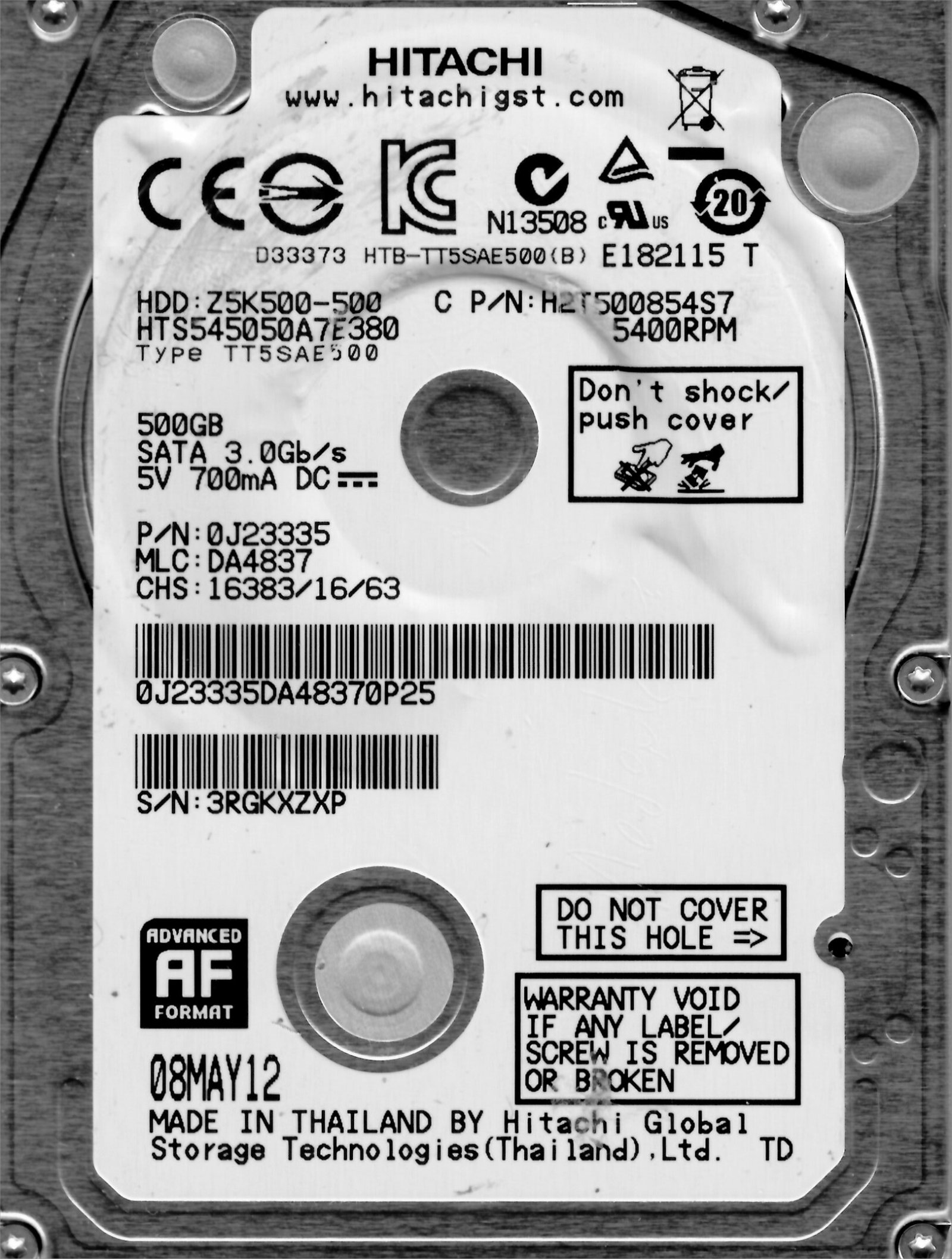 Elektronik von Festplatte 2,5″ SATA HITACHI HTS545050A7E380 500GB