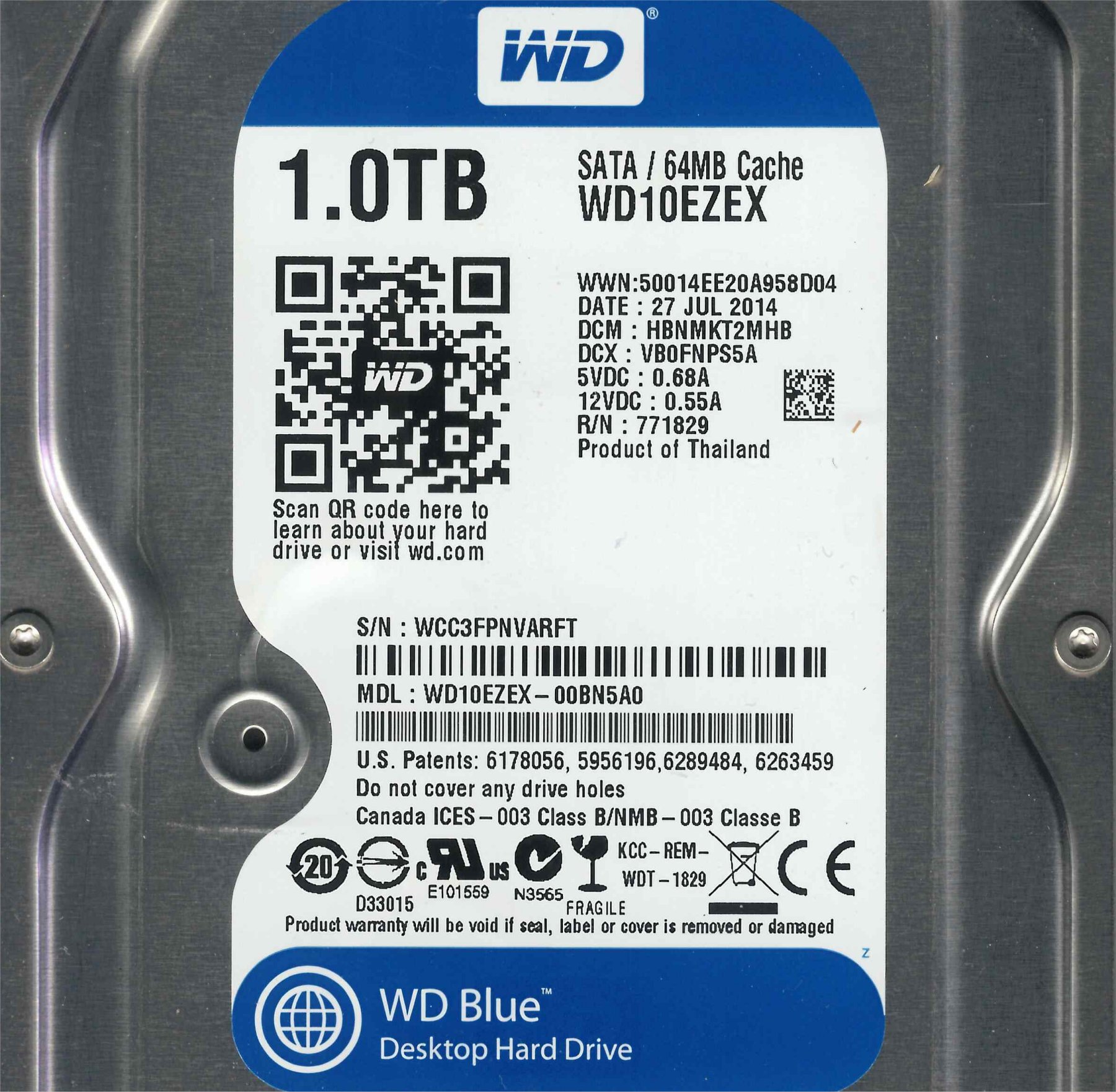 Elektronik von Festplatte 3,5″ SATA WD10EZEX-00BN5A0