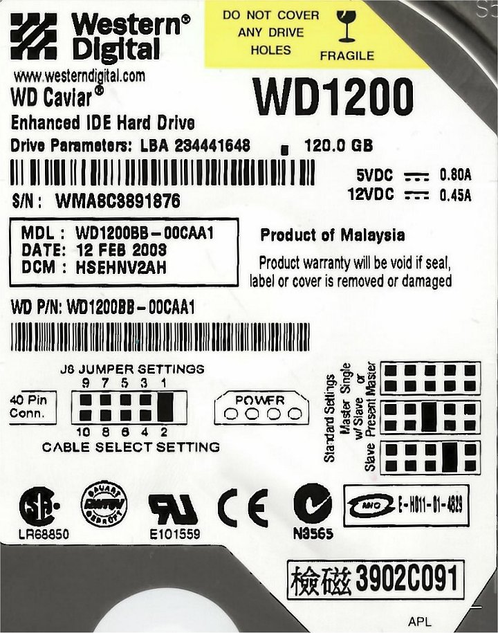 Elektronik von Festplatte 3,5″ ATA 120GB WD1200BB-00CAA1