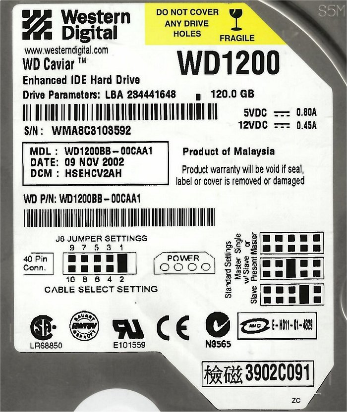 Elektronik von Festplatte 3,5″ ATA Western Digital WD1200BB – 00CAA1