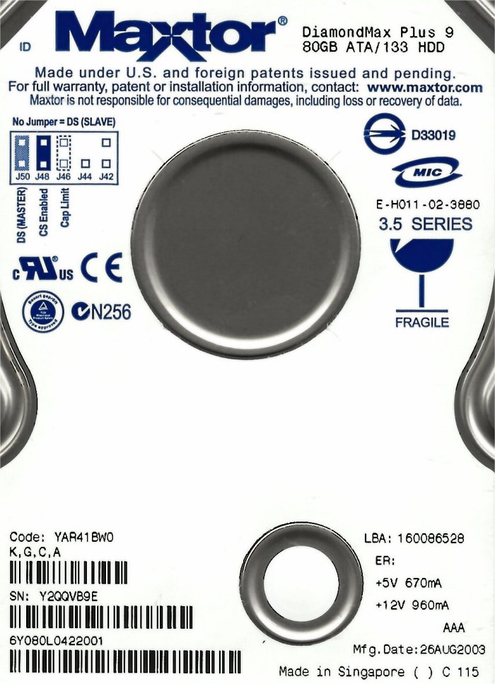 Elektronik von Festplatte 3,5″ IDE Maxtor DiamondMax Plus 9 YAR41BW0 6Y080L0422001