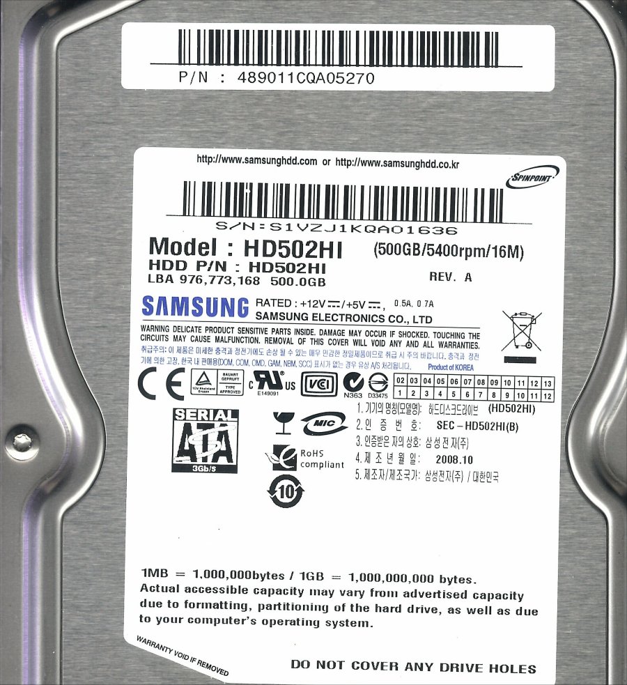 Elektronik von Festplatte 3,5″ SATA Samsung HD500HI 500GB REV.A 2008.10