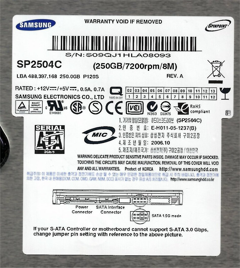 Elektronik von Festplatte 3,5″ SATA Samsung SP2504C 250GB P120S