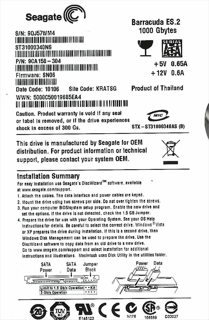 Modell : ST´31000340NS