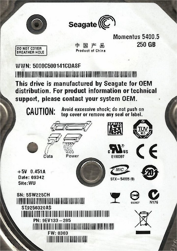 Elektronik von HDD 2,5 SATA Seagate Momentus 5400.5 250GB ST9250320AS
