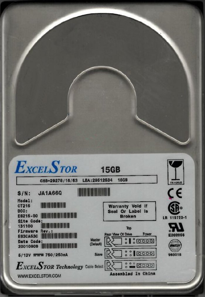 Gebrauchte Festplatte IDE ExcelStore 15GB CT215
