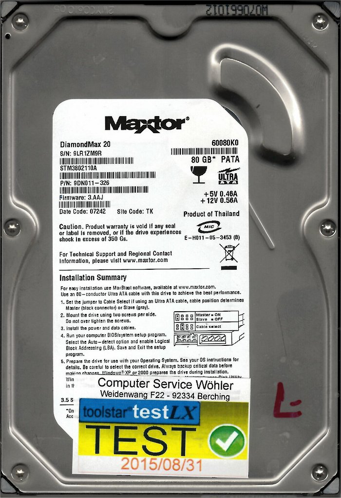 Gebrauchte Festplatte IDE Maxtor DiamondMax 20 STM3802110A