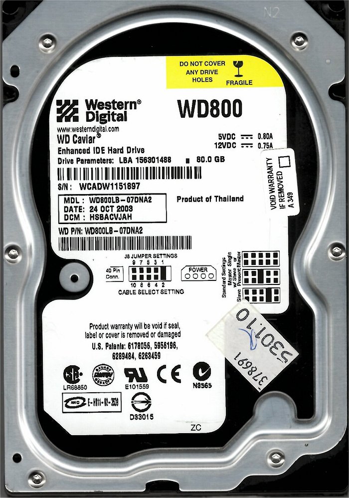 Gebrauchte Festplatte IDE Western Digital WD800LB – 07DNA2