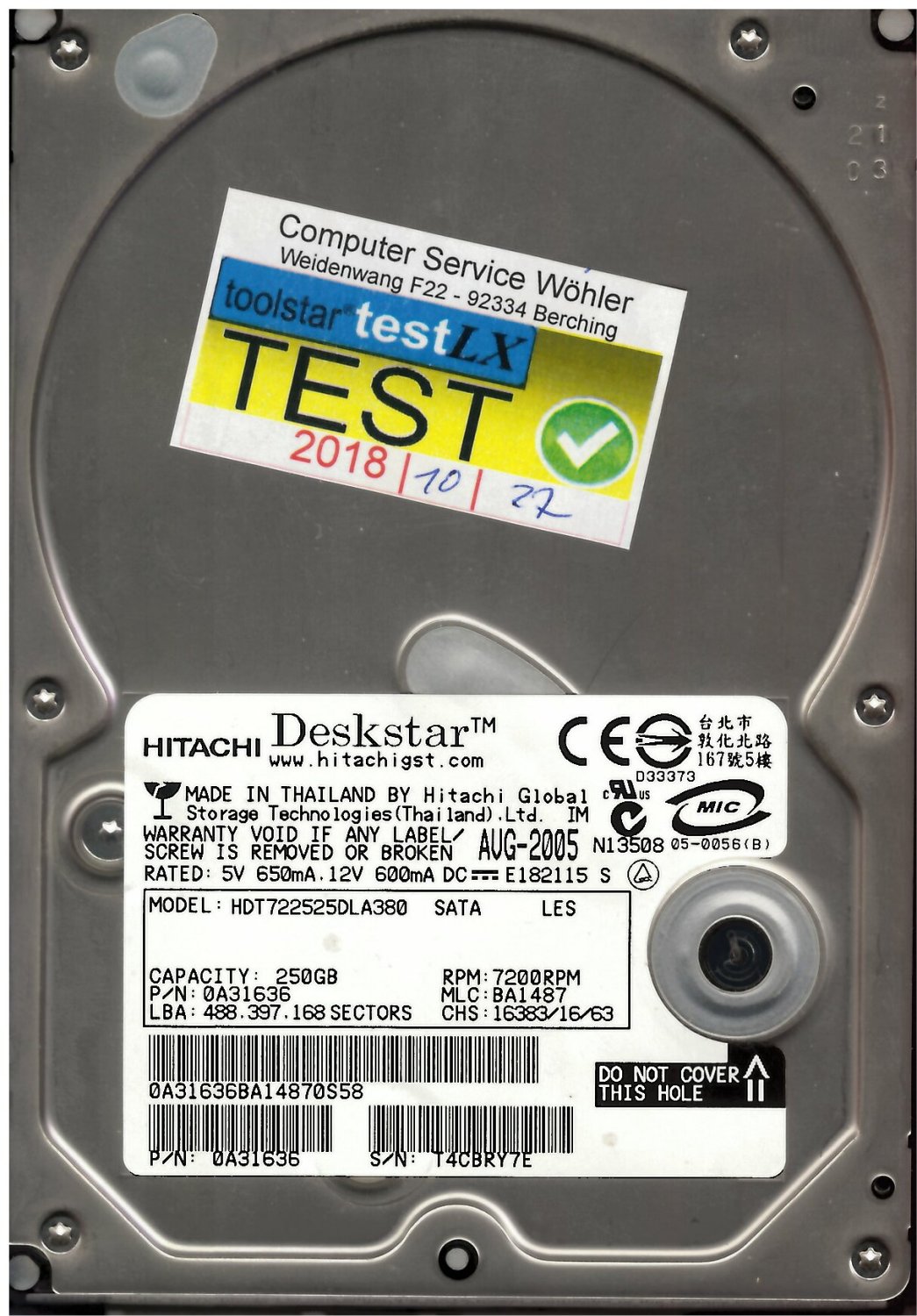 Gebrauchte Festplatte SATA HITACHI Deskstar HDT722525DLA380 250GB AUG-2005